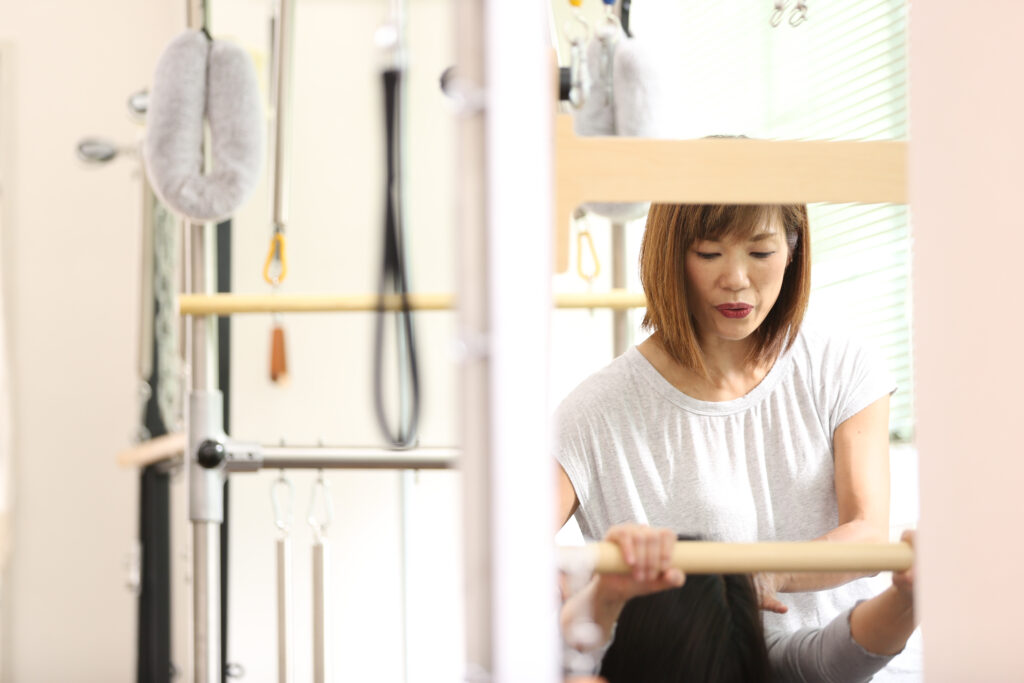 などのピラティスマシンを使いながら、